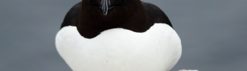 When I look at the razorbill with its black face and narrow white stripes around the eyes and beak, I cannot help thinking they may have migrated from outer space as opposed to somewhere in North America. These shots were taken at the Farne Islands where thousands of razorbills descend to breed each year and make little aliens.