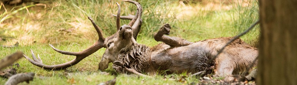 Here are a few shots of a red deer stag wallowing in the mud at Richmond Park.