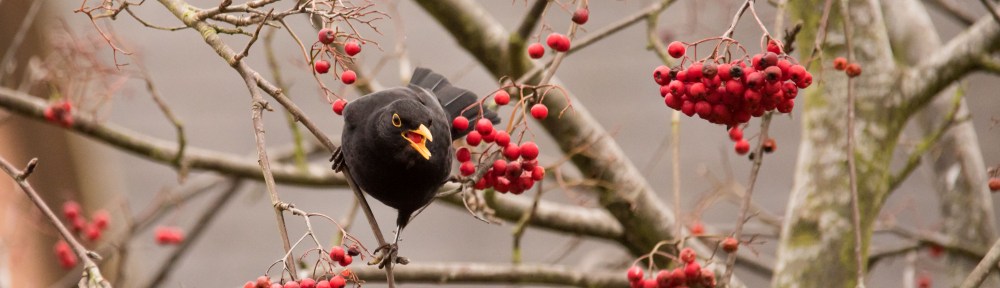 A few shots of a Blackbird hungrily gorging on berries.